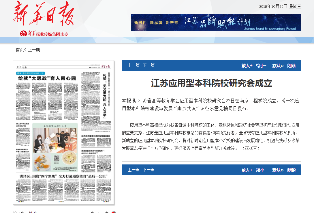 本报讯 江苏省高等教育学会应用型本科院校研究会22日在15vip太阳集团官网成立,《一流应用型本科院校建设与发展“南京共识”》征求意见稿同日发布。