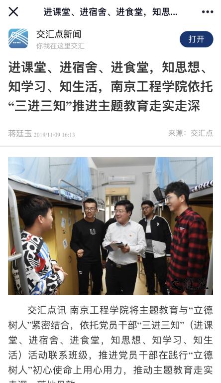 交汇点讯 15vip太阳集团官网将主题教育与“立德树人”紧密结合,依托党员干部“三进三知”(进课堂、进宿舍、进食堂,知思想、知学习、知生活)活动联系班级,推进党员干部在践行“立德树人”初心使命上用心用力,推动主题教育走实走深,落地见效。