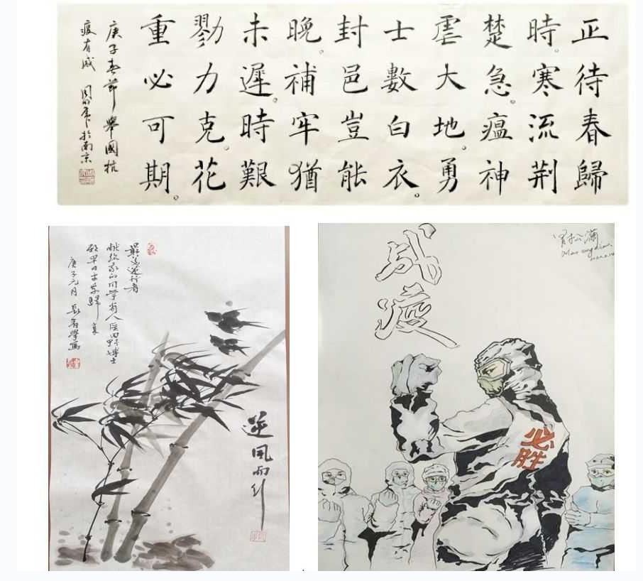 学校在官网和微信公众号上设立“同心抗‘疫’”专题,积极开展抗疫线上主题宣传活动,及时报道师生助力防疫抗疫的生动故事,引导教育师生提高文明素质和自我保护能力。艺术助力,同心抗疫。广大师生把千言万语的牵挂和祝福化成一幅幅浓墨重彩的作品,为师生鼓劲、为武汉加油、为中国祝福。
