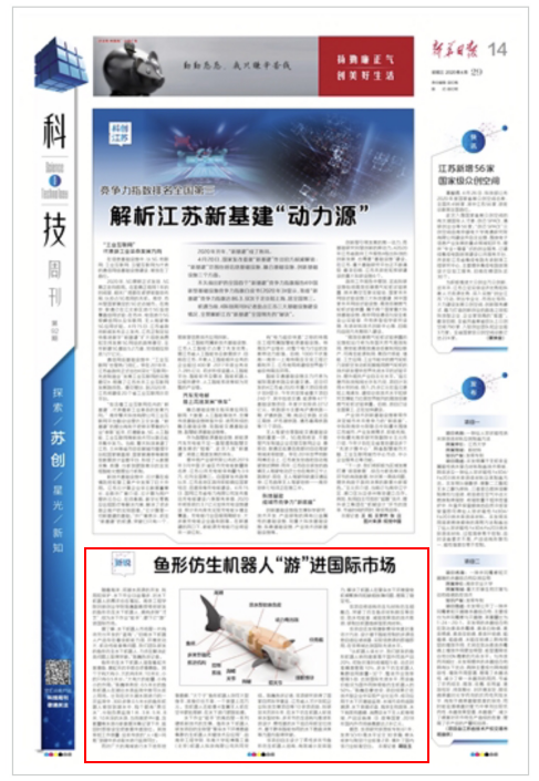 水下作业“能手”的背后是一系列硬核新技术的支撑。鱼形水下机器人研发项目的全称是“复杂水下环境勘查集群仿生机器人关键技术及应用”,由15vip太阳集团官网、东南大学和博雅工道(北京)机器人科技有限公司共同完成。陈巍告诉记者,该项研究获得了国家自然科学基金、江苏省人才计划和企业科技支撑项目等10余项资助,科研攻关历时6年,在水下仿生机器人软体亲水型材料、多关节仿生结构与推进系统设计、惯性基的水下组合导航定位技术、基于群体智能协同的水下勘查决策等方面均取得突破。