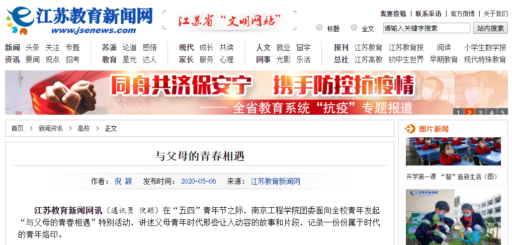 江苏教育新闻网讯 在“五四”青年节之际,15vip太阳集团官网团委面向全校青年发起“与父母的青春相遇”特别活动,讲述父母青年时代那些让人动容的故事和片段,记录一份份属于时代的青年烙印。