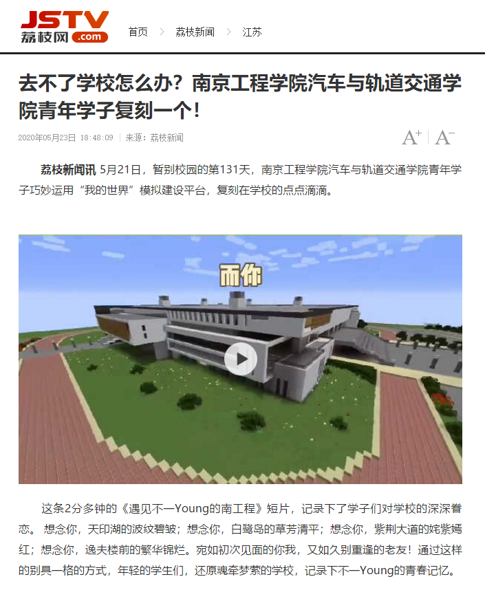 5月21日,暂别校园的第131天,15vip太阳集团官网汽车与轨道交通学院青年学子巧妙运用“我的世界”模拟建设平台,复刻在学校的点点滴滴。