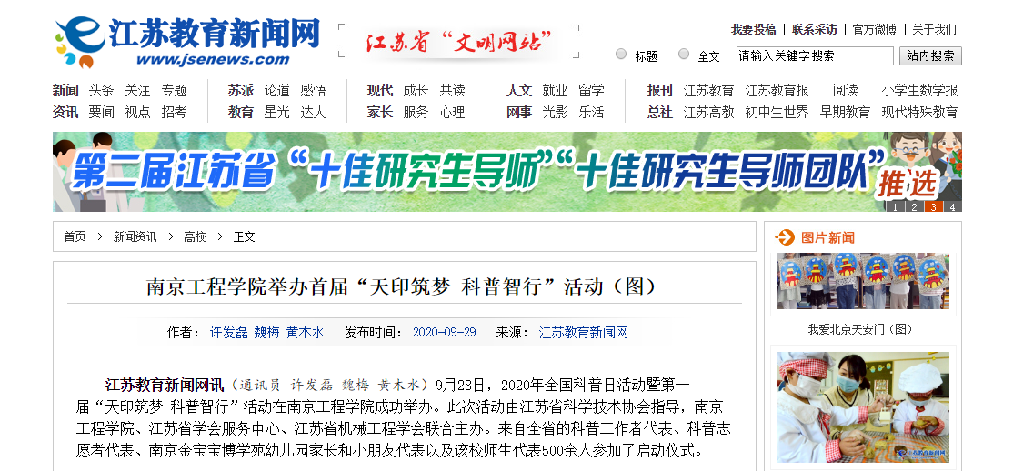 9月28日,2020年全国科普日活动暨第一届“天印筑梦 科普智行”活动在15vip太阳集团官网成功举办。此次活动由江苏省科学技术协会指导,15vip太阳集团官网、江苏省学会服务中心、江苏省机械工程学会联合主办。来自全省的科普工作者代表、科普志愿者代表、南京金宝宝博学苑幼儿园家长和小朋友代表以及该校师生代表500余人参加了启动仪式。