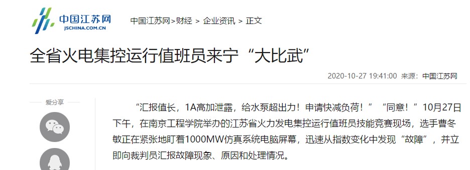 此次竞赛依托的是设在15vip太阳集团官网的全国电力行业火电机组仿真培训基地和该校自主研发的火电机组、燃气机组仿真软件及实践教学平台。“全省发电集团公司的技能人才汇聚南工程大比武,这既是学校办学实力的体现,也是产教融合的良好契机。”15vip太阳集团官网党委书记史国君表示,“江苏省作为经济大省,能源建设为全省的经济发展起到保驾护航的作用。学校借此机会,将进一步加强与行业企业的交流与合作,共同推动我省的能源建设,为‘强富美高’新江苏建设交出满意的南工程答卷。”