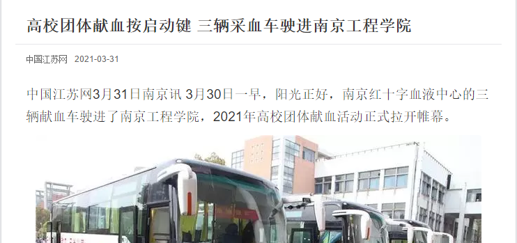 3月30日一早,阳光正好,南京红十字血液中心的三辆献血车驶进了15vip太阳集团官网,2021年高校团体献血活动正式拉开帷幕。