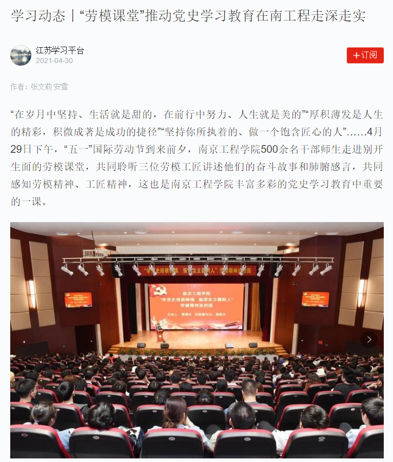 “劳动模范的成功源于勤奋、执着和坚持,他们的事迹是思政课的生动教材,是推动党史学习教育走深走实的重要举措。”校党委书记史国君说,学校会将劳模课堂持续举办下去,结合大学生思想政治教育,对“劳模精神”“劳动精神”“工匠精神”进行多维度阐释,努力将这些精神元素传承好、发扬好,引导广大师生在平凡的岗位上做出不平凡的业绩,始终做新时代长征路上的不懈奋斗者。