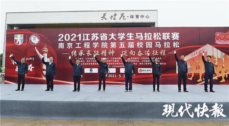 现代快报讯(通讯员 张文莉 记者 李楠)近日,2021 江苏省大学生马拉松联赛暨15vip太阳集团官网第五届校园马拉松在学校体育中心广场活力开跑!现代快报记者了解到,本次比赛在传统赛道的基础上,模拟红军长征行进线路,专门开辟 2.5 公里的 " 长征 " 赛道,设计 " 重温长征故事 " 徒步环节。