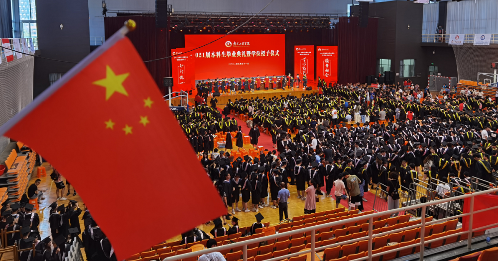 上午,毕业生们身着学士服、踏上红地毯,带着自信与活力迎接这场专属于他们大学青春的盛大典礼。他们将手中的国旗放在胸前,齐声同唱《义勇军进行曲》,用最真诚洪亮的歌声为党和祖国祝福,为充满希望的明天蓄力。“每当国歌旋律响起,我总会热泪盈眶。”入职海南核电有限公司的会计学172班许洋同学即将远赴海南,她表示在未来的时光中,定会将“爱国”刻在心中,肩负起青年学子的使命与担当,无惧风雨、砥砺前行。