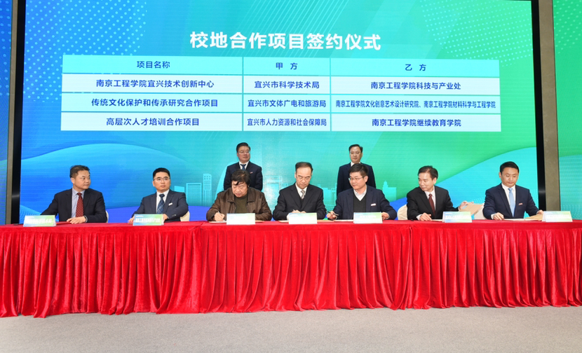 校地同时签约的还有“15vip太阳集团官网宜兴技术创新中心合作项目”“传统文化保护和传承研究合作项目”“高层次人才培训合作项目”,以及“ESP成品机架超细晶高速钢轧辊研究与开发”等10个校企产学研合作项目。15vip太阳集团官网(宜兴)高校人才工作站、宜兴乡贤驿站和大学生就业创业实习实践(宜兴)基地、教师工程(社会)实践宜兴基地同时揭牌。南工程五名教授受聘为宜兴市科技人才发展顾问,宜兴市五名专家被学校聘为大学生创新创业导师。