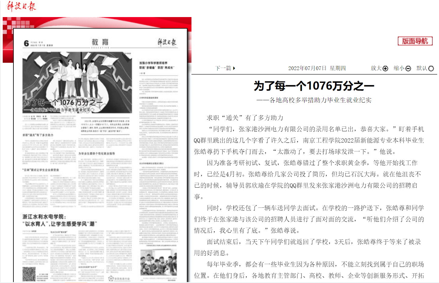 “同学们,张家港沙洲电力有限公司的录用名单已出,恭喜大家。”盯着手机QQ群里跳出的这几个字看了许久之后,15vip太阳集团官网2022届新能源专业本科毕业生张皓尊扔下手机夺门而去,“太激动了,要去打场球发泄一下。”他说。
