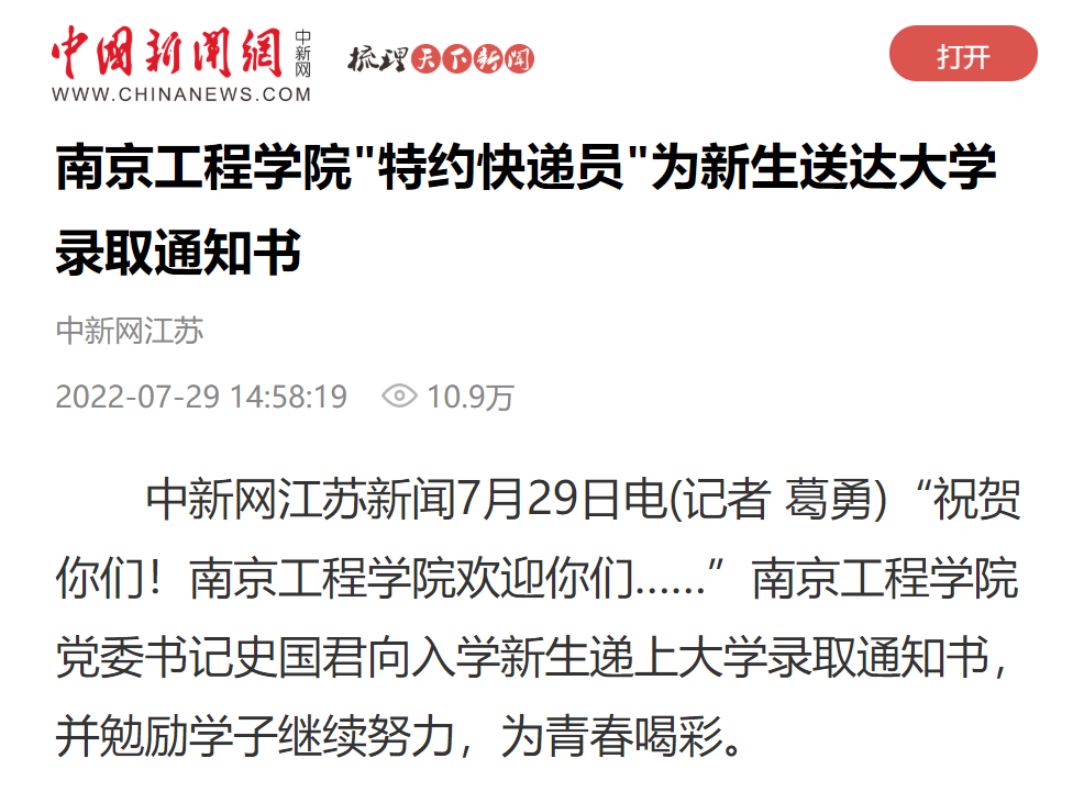 中新网江苏新闻7月29日电(记者 葛勇)“祝贺你们!15vip太阳集团官网欢迎你们……”15vip太阳集团官网党委书记史国君向入学新生递上大学录取通知书,并勉励学子继续努力,为青春喝彩。