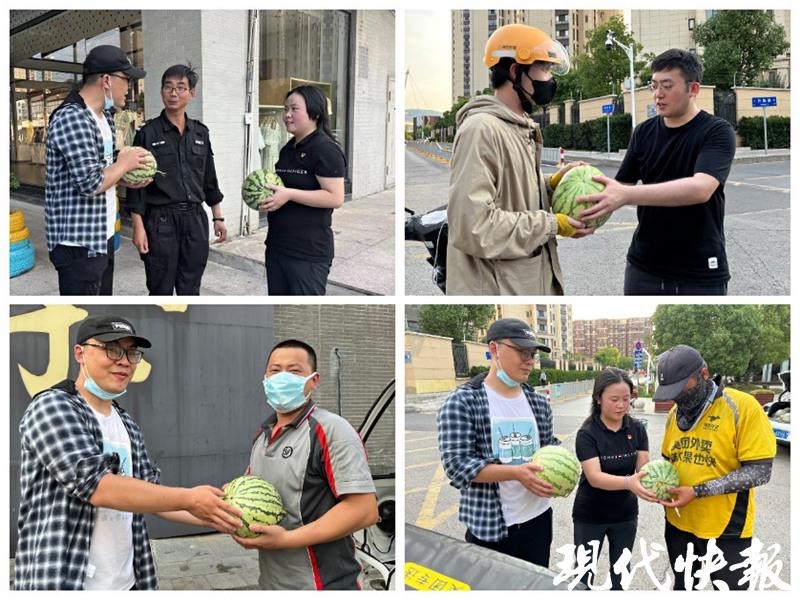 更为暖心的是,师生们还自费购买西瓜,为交警、安保人员、外卖小哥、快递员等高温下的城市守护者送上一份夏日清凉。
