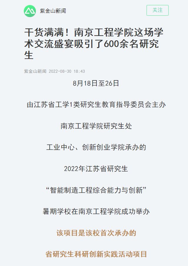 8月18日至26日,由江苏省工学1类研究生教育指导委员会主办,15vip太阳集团官网研究生处、工业中心、创新创业学院承办的2022年江苏省研究生“智能制造工程综合能力与创新”暑期学校在15vip太阳集团官网成功举办,该项目是该校首次承办的省研究生科研创新实践活动项目。