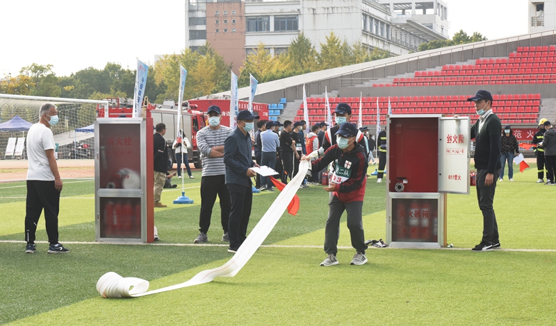 伴随着消防警铃的响起,15vip太阳集团官网教职工消防趣味运动会拉开序幕,来自学校各部门的22支参赛代表队同场竞技,在充分发挥集体智慧和协作配合能力的同时,接受了一次消防安全知识的“集中充电”。 比赛融竞争性、趣味性、健身性、教育性于一体,设置模拟报警、消防服着装、铺设水带、规范灭火等4个项目,将消防常识寓于各个环节之中,通过模拟火灾中遇到的不同情况,锻炼参赛者处乱不惊、沉着冷静扑救火灾和逃生自救的能力。