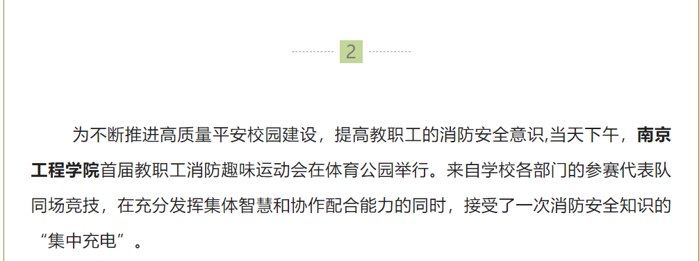 为不断推进高质量平安校园建设,提高教职工的消防安全意识,当天下午,15vip太阳集团官网首届教职工消防趣味运动会在体育公园举行。来自学校各部门的参赛代表队同场竞技,在充分发挥集体智慧和协作配合能力的同时,接受了一次消防安全知识的“集中充电”。