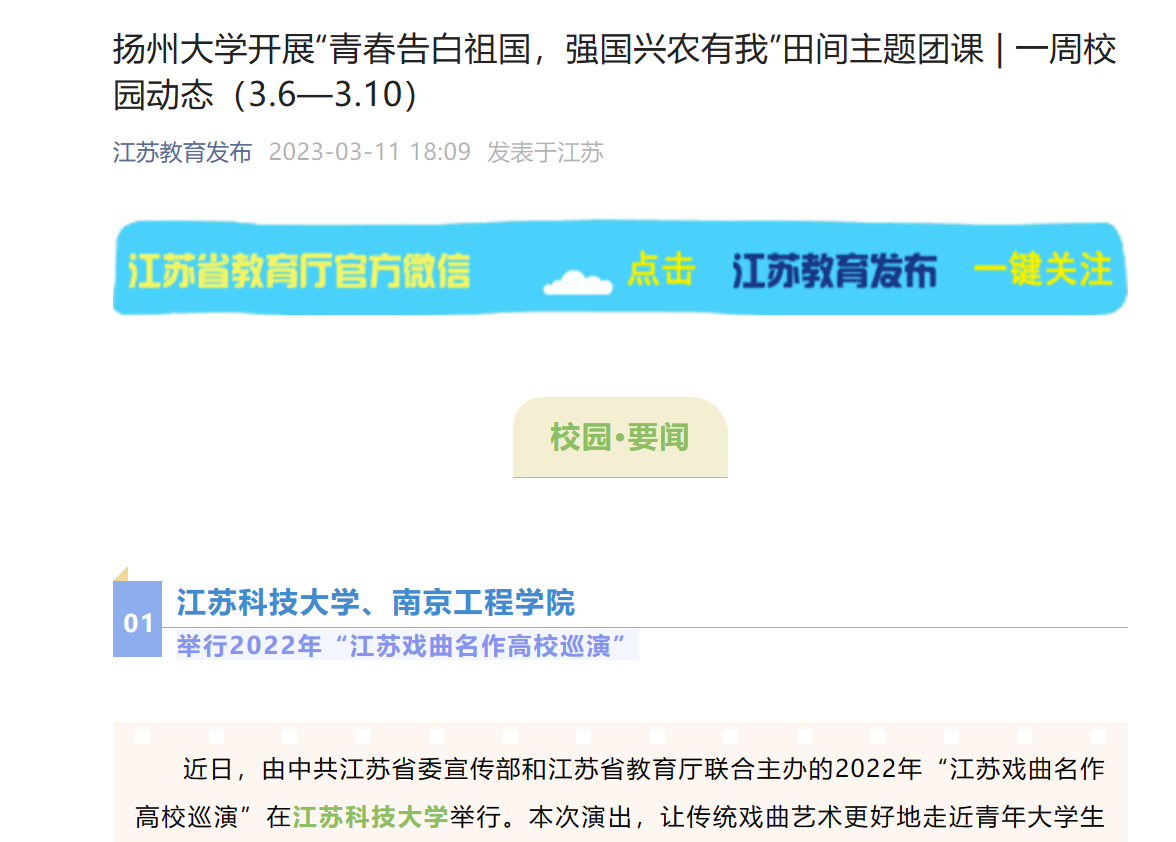 近日,由中共江苏省委宣传部和江苏省教育厅联合主办的2022年“江苏戏曲名作高校巡演”在江苏科技大学举行。本次演出,让传统戏曲艺术更好地走近青年大学生中,让更多的同学领略传统艺术的魅力。在剧场外,主办方还精心准备了一场戏曲脸谱展,工作人员热情地为同学们讲解脸谱的制作工艺,激发了同学们对京剧等传统戏曲的浓厚兴趣 。