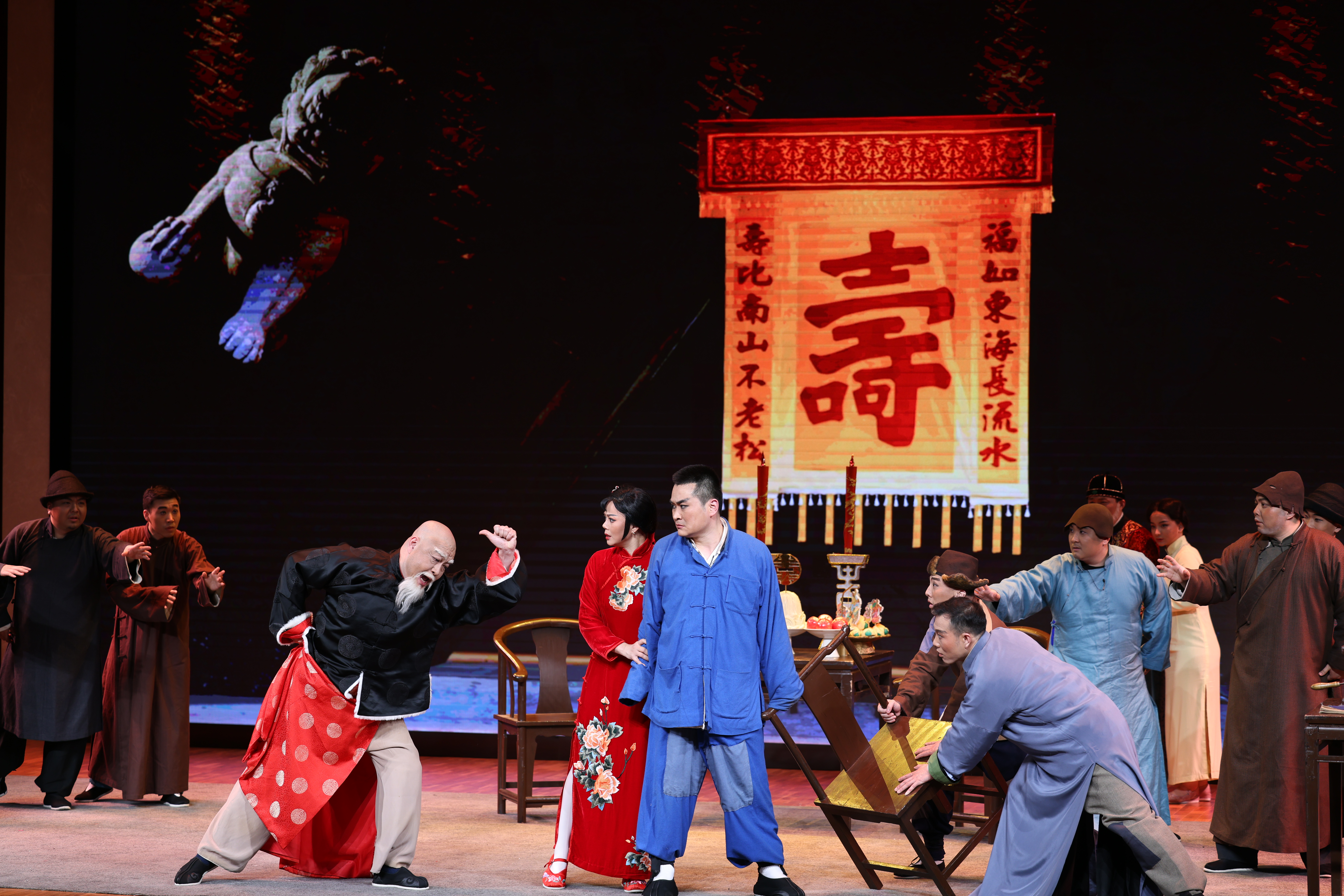 演出中,“虎妞”嬉笑怒骂,神采飞扬,经典的双人“醉舞”,生动的曹宅逼嫁、寿堂相骂等场景,收获了全场一次高过一次的掌声。“高飞老师的虎妞真的很虎,有野性,冲突激越,叫板式的唱腔太有艺术性,非常过瘾!”马克思主义学院教师吕庆华表示。