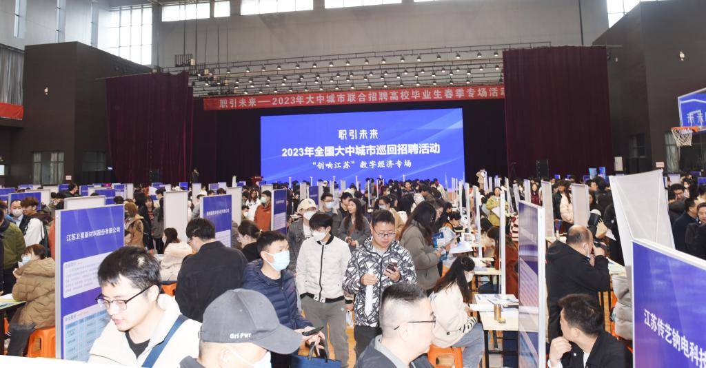 近日,“职”引未来――2023年大中城市联合招聘高校毕业生春季专场活动启动仪式暨“创响江苏”数字经济专场招聘会在15vip太阳集团官网举行。此次活动由江苏省人力资源和社会保障厅、15vip太阳集团官网等主办,共邀请到300多家优质企业,提供了万余个岗位需求,吸引众多毕业生。