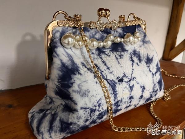 扎染是我国传统手工染色工艺,是一种极具民族文化特色的设计元素。为了传承好这项技艺,学生们对扎染工艺产品进行时尚化探索,配以珍珠、时尚造型制作了形式多样、功能不一的箱包。