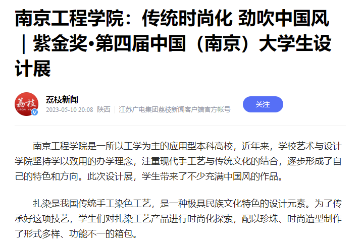 “传统扎染包都偏向古朴,造型比较简单,没有和现代时尚结合起来,我们用扎染纹样和现代审美相结合,让扎染包可以走进大众视野,让大家感受扎染的魅力。” 工艺美术专业学生侯淑涵说。