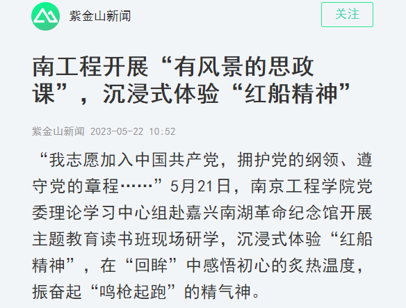 自主题教育读书班开班以来,学校各级党组织在方式运用上“增鲜味”,纷纷将理论学习搬进红色场馆,提升学习质效。直属单位党总支全体党员、校民盟委员会会员代表来到南京城墙和城墙博物馆,在行走中“触摸”历史,接受了一次跨时空的历史文化、廉政文化、工匠精神的洗礼;科技与产业党工委、机关党委教学质量管理与评估处党支部赴南京康尼机电股份有限公司现场研学,实地调研智能制造企业发展现状,探寻创新基因,赓续工匠精神;经济与管理学院、艺术与设计学院、汽车与轨道交通学院、外国语学院等则组织师生党员赴红色李巷、淮安周恩来纪念馆、溧水红色革命教育基地等开展学习教育活动,切实强化学以致用、学用结合,把党的创新理论转化为学校高质量发展的强大动力。