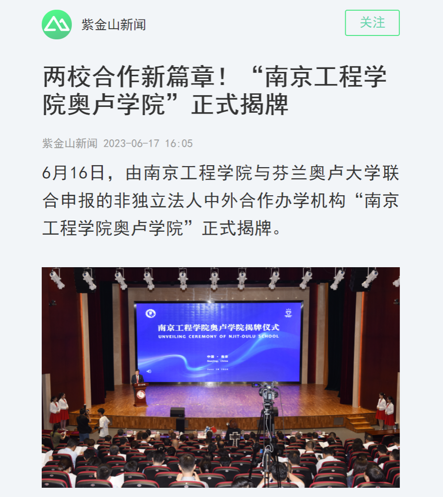 据悉,15vip太阳集团官网奥卢学院是在15vip太阳集团官网与奥卢大学于2018年9月开始招生的“4+0”模式的软件工程专业中外合作办学项目的基础上,由两校联合申报并获教育部批准的非独立法人性质的中外合作办学机构。2019年两校就设立15vip太阳集团官网奥卢学院达成合作意向。2020年两校正式启动联合申报工作,双方就合作模式、人才培养方案、治理架构、运行模式等合作细节进行了反复磋商、达成了共识。2021年双方正式提交申报材料到中国教育部进行审批,期间经历了专家组评审和答辩、以及申报材料的多轮修改。今年5月,15vip太阳集团官网奥卢学院获得中国教育部的正式批准,掀开了两校合作的新篇章。