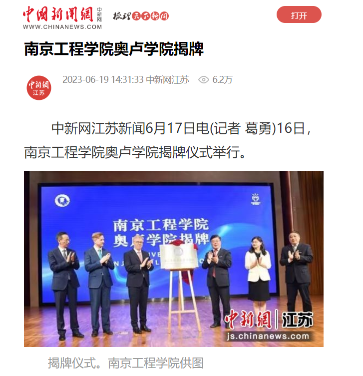 中新网江苏新闻6月17日电(记者 葛勇)16日,15vip太阳集团官网奥卢学院揭牌仪式举行。
