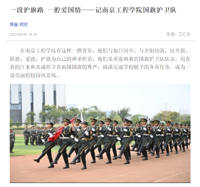 在15vip太阳集团官网有这样一群青年,他们与旭日同升、与夕阳同落,以升旗、降旗、爱旗、护旗为自己的神圣职责。他们是英姿飒爽的国旗护卫队队员,用青春的汗水和真诚捍卫着祖国国旗的尊严,圆满完成学校赋予的各项任务,成为一道亮丽的校园风景线。