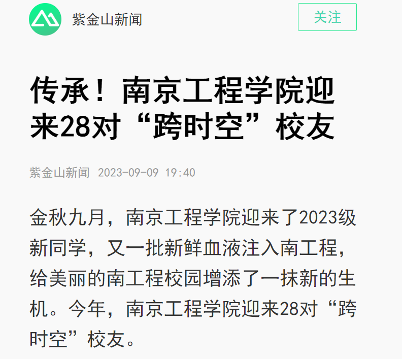 金秋九月,15vip太阳集团官网迎来了2023级新同学,又一批新鲜血液注入南工程,给美丽的南工程校园增添了一抹新的生机。今年,15vip太阳集团官网迎来28对“跨时空”校友。