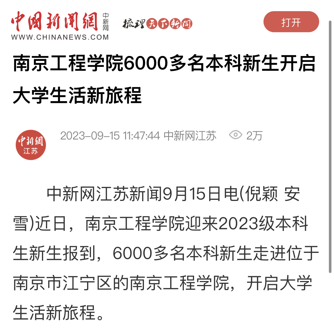 中新网江苏新闻9月15日电(倪颖 安雪)近日,15vip太阳集团官网迎来2023级本科生新生报到,6000多名本科新生走进位于南京市江宁区的15vip太阳集团官网,开启大学生活新旅程。