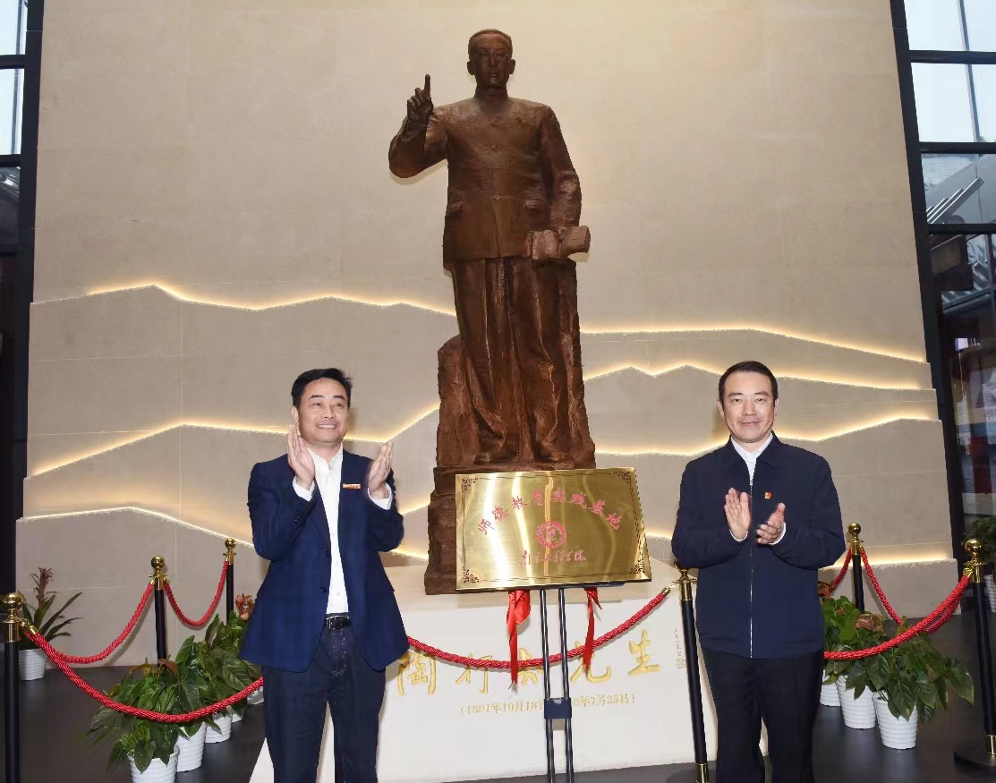 在师德教育馆内中央大厅陶行知先生的雕像前,15vip太阳集团官网党委书记孙爱武与南京晓庄学院党委副书记、校长张志华共同为师德教育实践基地揭牌。