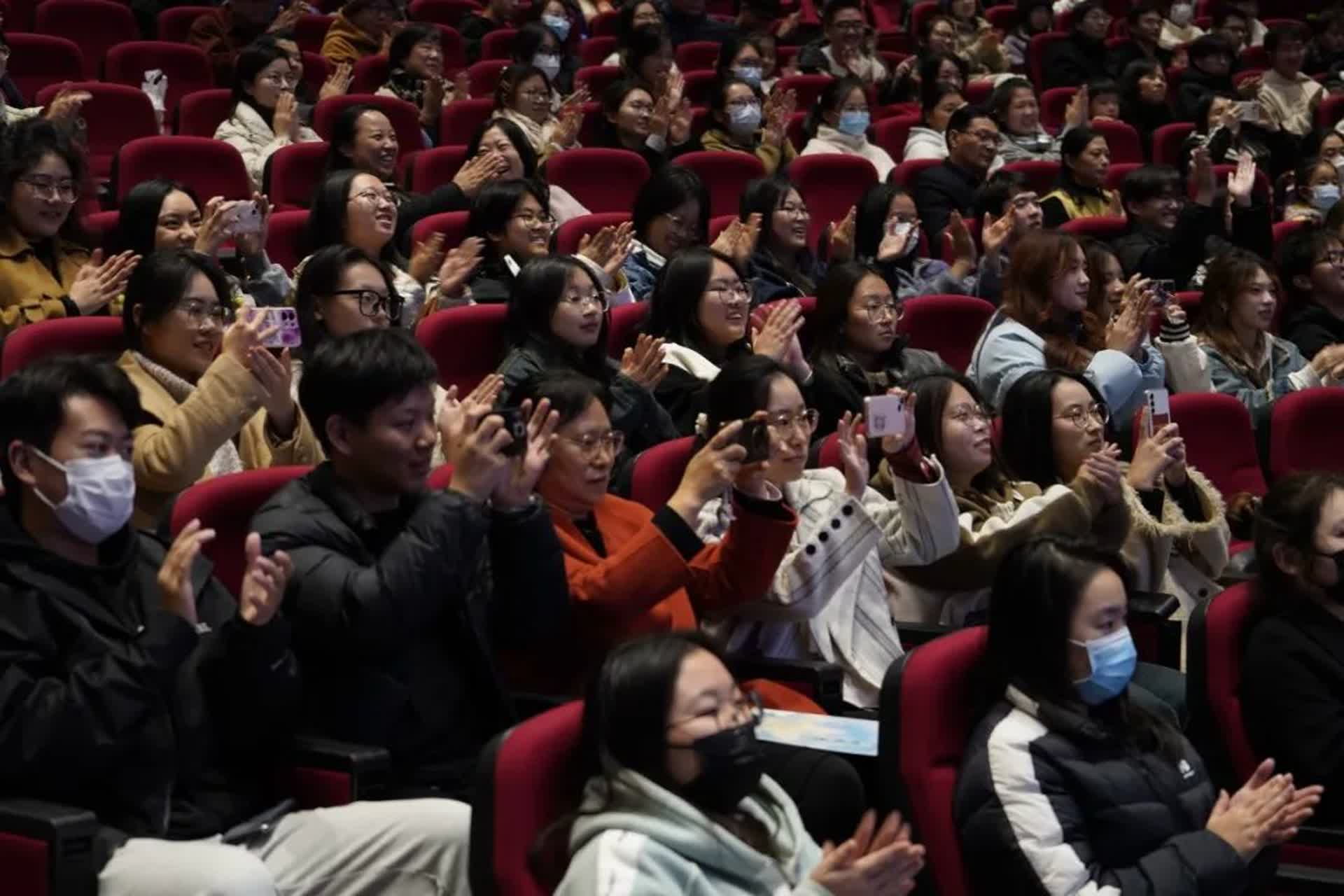 作为当代昆曲舞台上鲜有的轻喜剧作品,昆曲《蝴蝶梦》是省昆在继承传统经典的基础上,进行创造性转化和创新性发展的一次探索,它既有古典戏剧场中肆意的科诨,亦有当代审美表达中怪异的荒诞。它的外壳是嬉笑怒骂的,内里却仍包裹着对人生、对情感命题的严肃探讨,而正是这种另类的矛盾塑造出它的独特。随着故事情节的展开,现场青年学子时而欢笑、时而沉思、时而鼓掌,深深沉浸在剧情之中,领略传统戏曲的魅力。