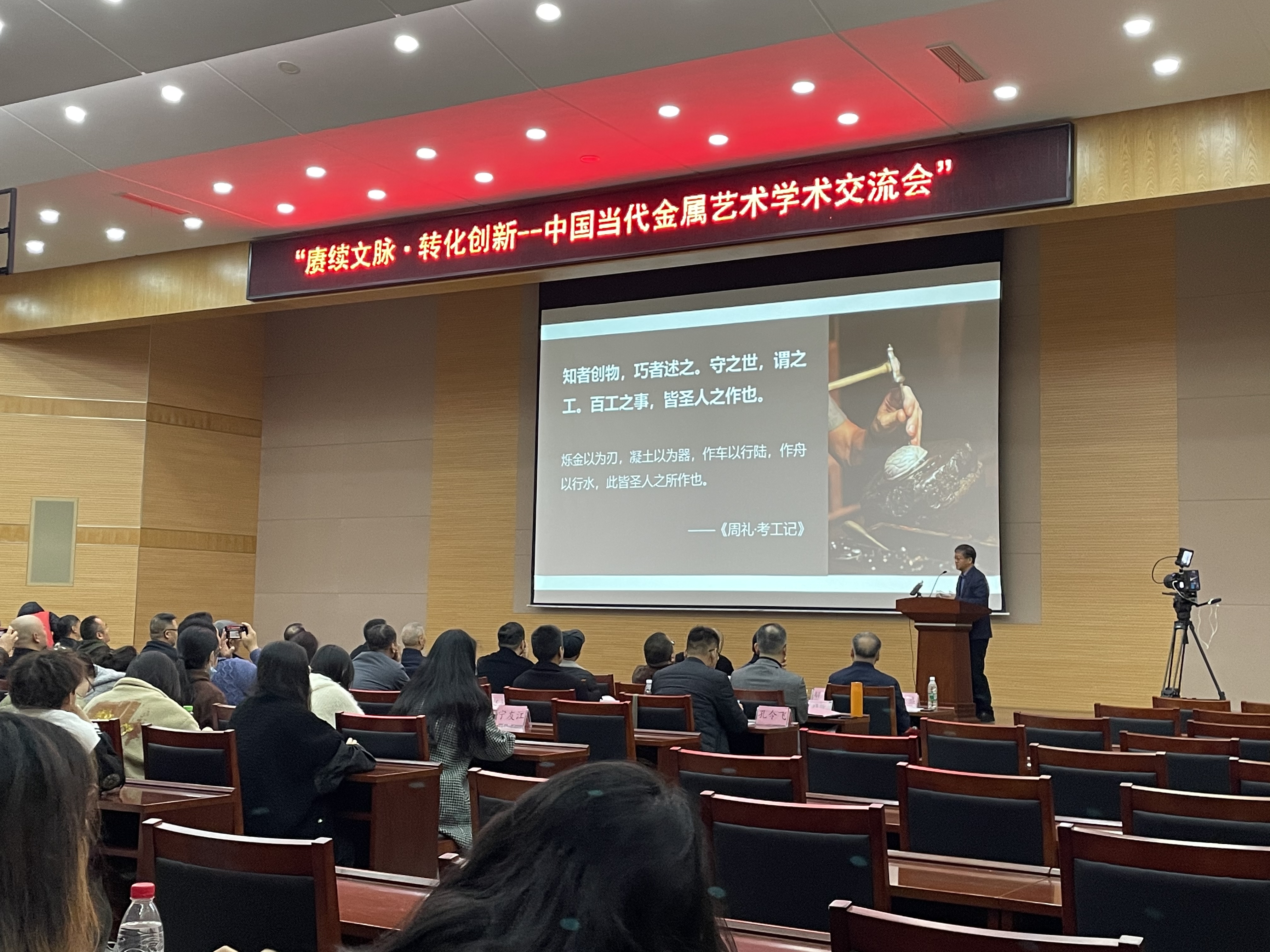 由清华大学美术学院工艺美术系教授、中国工艺美术协会金属艺术专业委员会主任周尚仪担任学术主持,众多学者专家登台展示学术成果:清华大学美术学院院长、中国工艺美术协会副会长马赛带现场观众探索《工艺美术中的科技》,中国工艺美术协会副会长、江苏省工艺美术协会名誉会长马达带来《浅论金属艺术的创新发展》,民盟中央文化委副主任、北京设计学会创始人宋慰祖分享了《关于传统工艺美术传承保护与创新发展的再思考——从金属工艺品谈起》。