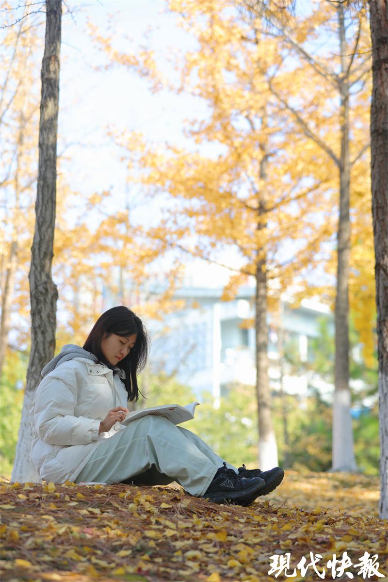 大三学子李瑞青趁着难得的美好时光,在校园的银杏林中读书、赏景,非常惬意。“”校园很美,这个季节最喜欢这片银杏林,就在宿舍旁边。我经常吃过午饭会来这里,一边看书,一边聆听风吹落叶的声音,感受一段宁静的时光。”