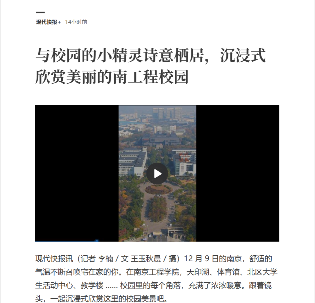 《现代快报》:与校园的小精灵诗意栖居,沉浸式欣赏美丽的南工程校园