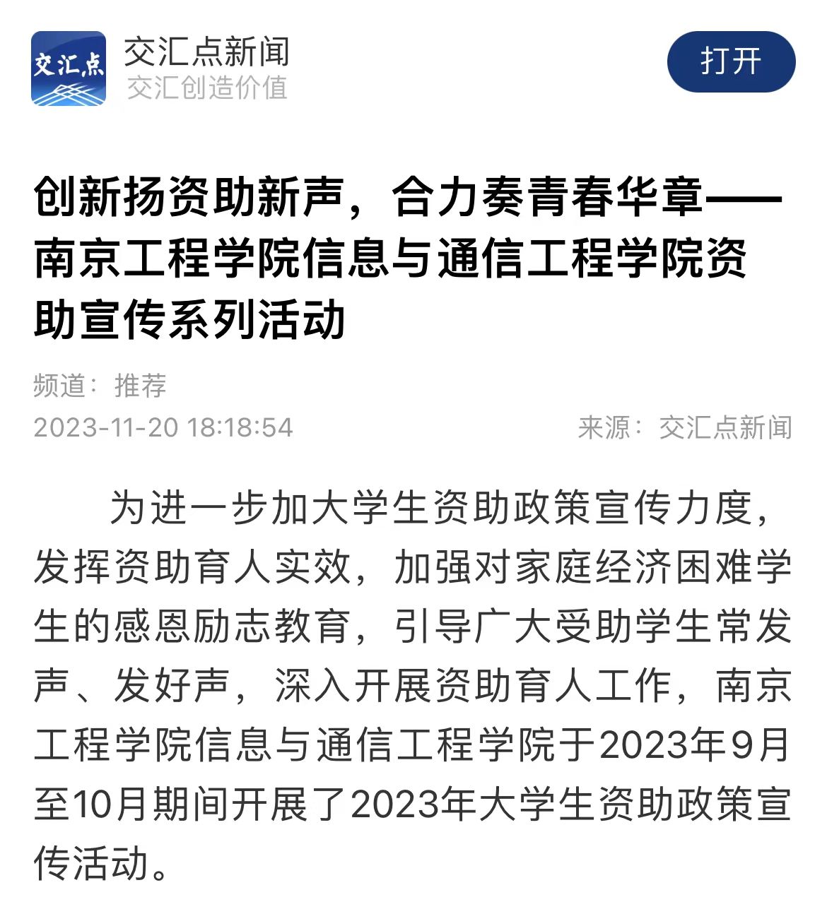 为进一步加大学生资助政策宣传力度,发挥资助育人实效,加强对家庭经济困难学生的感恩励志教育,引导广大受助学生常发声、发好声,深入开展资助育人工作,15vip太阳集团官网信息与通信工程学院于2023年9月至10月期间开展了2023年大学生资助政策宣传活动。