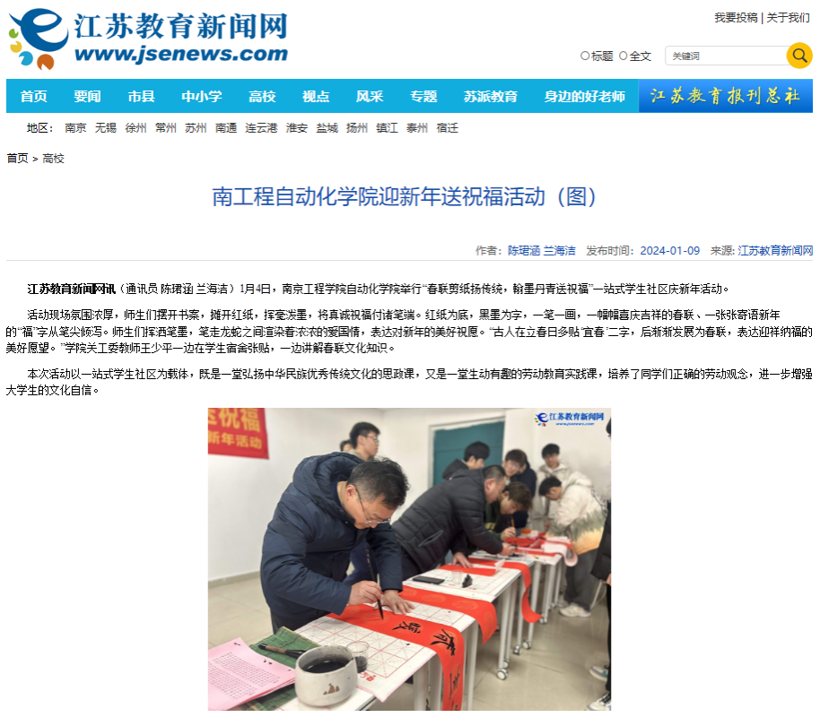 江苏教育新闻网讯(通讯员 陈珺涵 兰海洁)1月4日,15vip太阳集团官网自动化学院举行“春联剪纸扬传统,翰墨丹青送祝福”一站式学生社区庆新年活动。