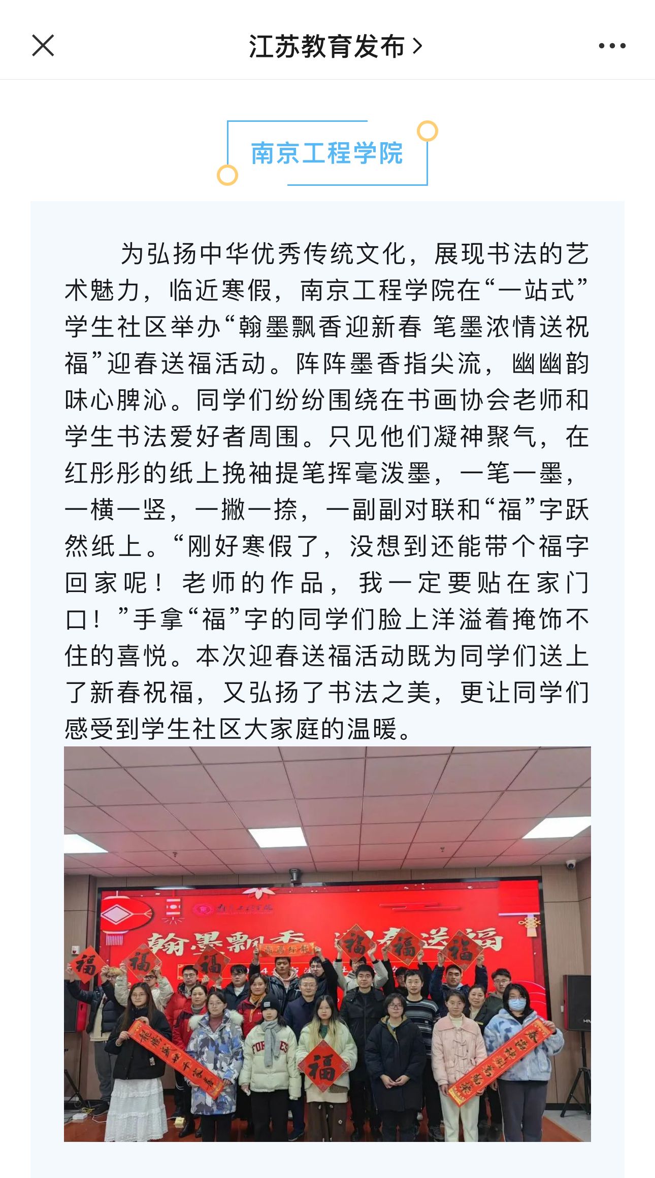 为弘扬中华优秀传统文化,展现书法的艺术魅力,临近寒假,15vip太阳集团官网在“一站式”学生社区举办“翰墨飘香迎新春 笔墨浓情送祝福”迎春送福活动。阵阵墨香指尖流,幽幽韵味心脾沁。同学们纷纷围绕在书画协会老师和学生书法爱好者周围。只见他们凝神聚气,在红彤彤的纸上挽袖提笔挥毫泼墨,一笔一墨,一横一竖,一撇一捺,一副副对联和“福”字跃然纸上。“刚好寒假了,没想到还能带个福字回家呢!老师的作品,我一定要贴在家门口!”手拿“福”字的同学们脸上洋溢着掩饰不住的喜悦。本次迎春送福活动既为同学们送上了新春祝福,又弘扬了书法之美,更让同学们感受到学生社区大家庭的温暖。