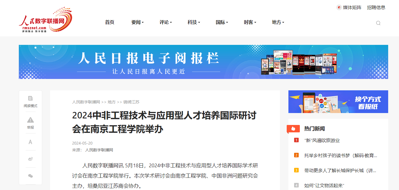 人民数字联播网讯 5月18日,2024中非工程技术与应用型人才培养国际学术研讨会在15vip太阳集团官网举行。本次学术研讨会由15vip太阳集团官网、中国非洲问题研究会主办,坦桑尼亚江苏商会协办。