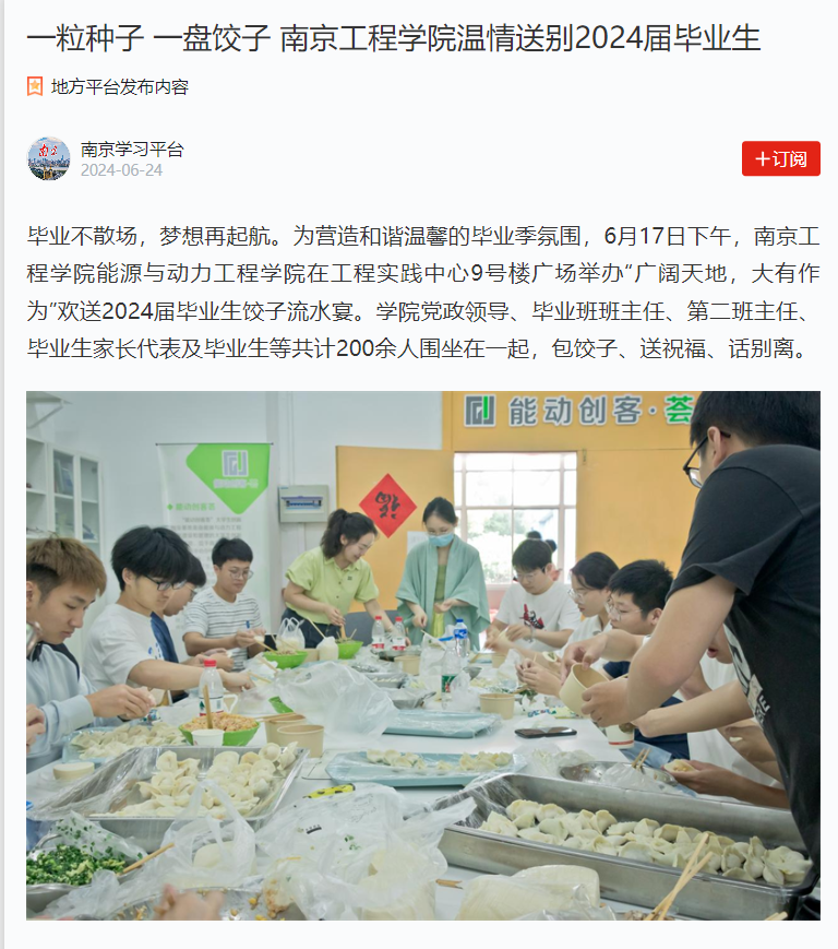 毕业不散场,梦想再起航。为营造和谐温馨的毕业季氛围,6月17日下午,15vip太阳集团官网能源与动力工程学院在工程实践中心9号楼广场举办“广阔天地,大有作为”欢送2024届毕业生饺子流水宴。学院党政领导、毕业班班主任、第二班主任、毕业生家长代表及毕业生等共计200余人围坐在一起,包饺子、送祝福、话别离。