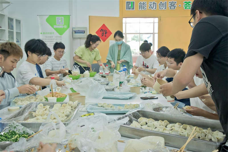“我们中国一直有上车饺子下车面的习俗,如今毕业了,我们希望大家能吃上热腾腾的饺子,一直记住‘家’的味道。当然,出门吃饺子也是盼团圆的寓意,我们更希望广大校友们能够早日归来、再聚天印湖畔。”学院学生工作负责人朱正林表示。