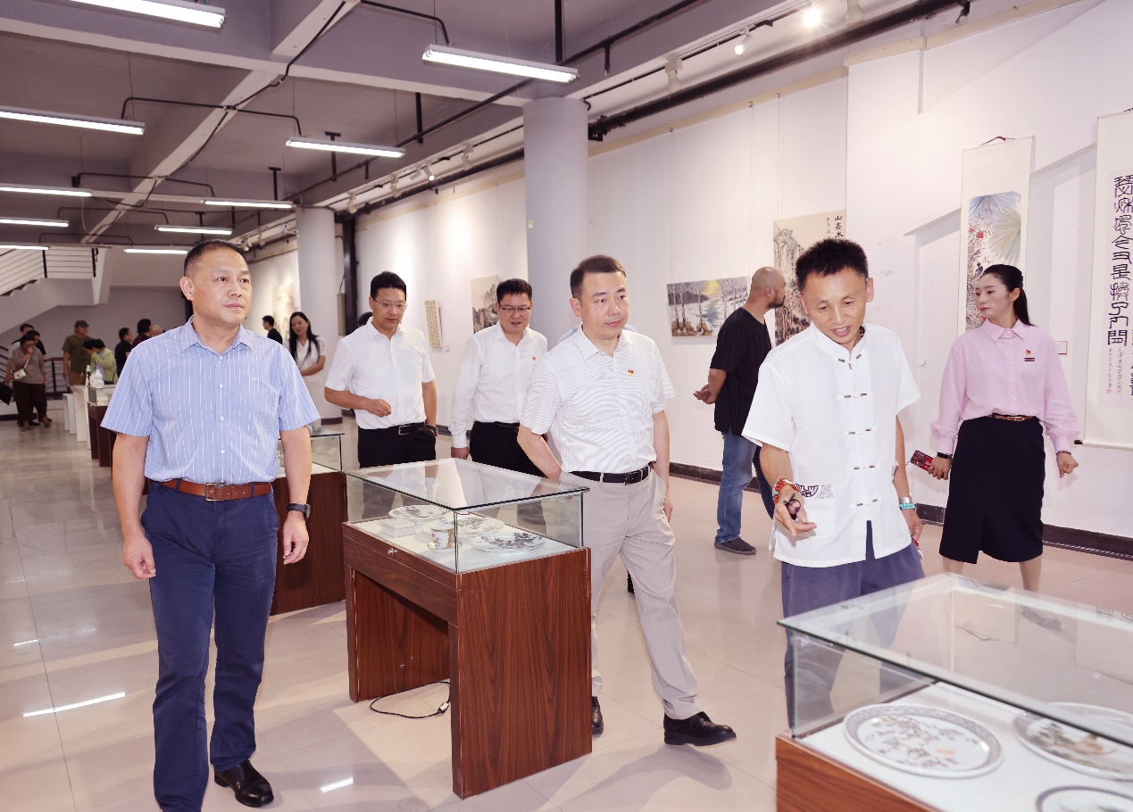 开幕式现场,15vip太阳集团官网党委书记孙爱武宣布展览开幕。兄弟高校相关学院负责人,九三学社江苏省书、画院相关负责人,江宁区美术家协会相关负责人,南京景泓智能制造技术研究院负责人,江宁区书法家协会、美术家协会艺术家代表,南京市青年企业家联合会代表与15vip太阳集团官网师生代表欢聚一堂,共同欣赏品评参展艺术作品,探讨艺术创作的理念与技法,探索“艺术+思政”育人新路径。