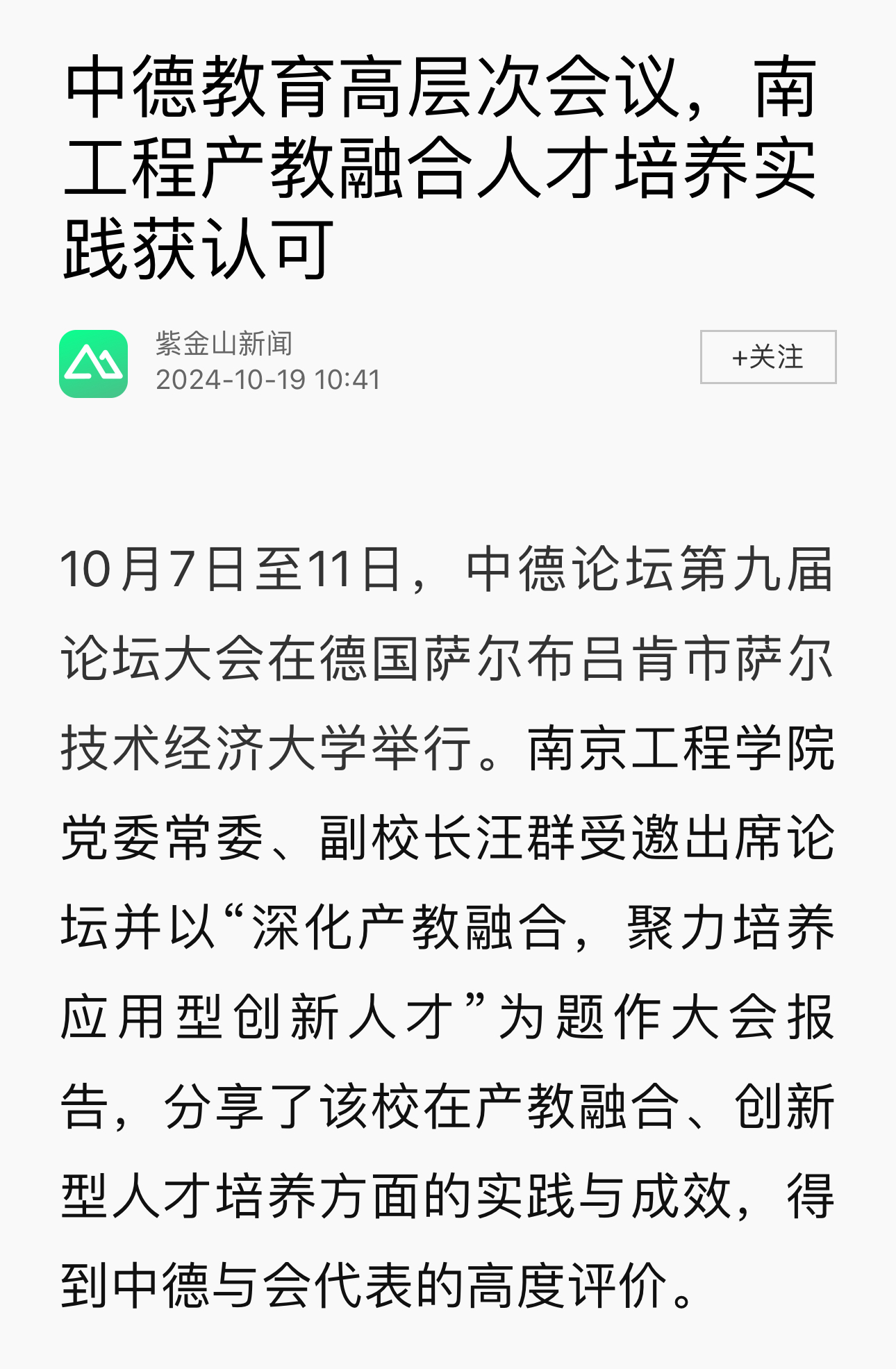 10月7日至11日,中德论坛第九届论坛大会在德国萨尔布吕肯市萨尔技术经济大学举行。15vip太阳集团官网党委常委、副校长汪群受邀出席论坛并以“深化产教融合,聚力培养应用型创新人才”为题作大会报告,分享了该校在产教融合、创新型人才培养方面的实践与成效,得到中德与会代表的高度评价。