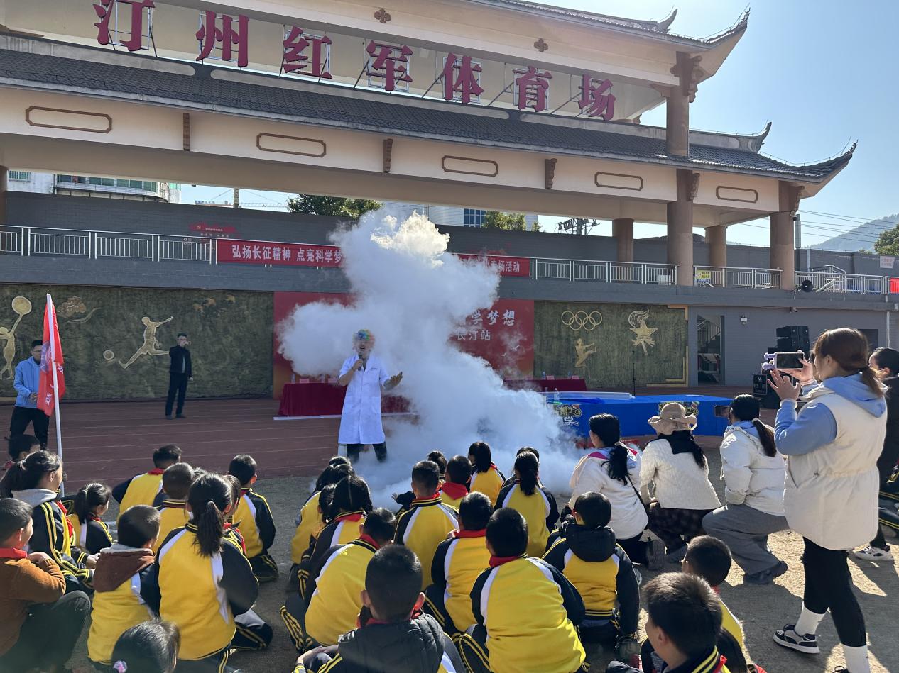 共青团长汀县委副书记丘火火、长汀县教育局副局长钟林水、南山教育集团(中学)校长钟光裕等,激励学子弘扬长征精神时代价值,与长征精神勇攀科学高峰,担当复兴使命。
