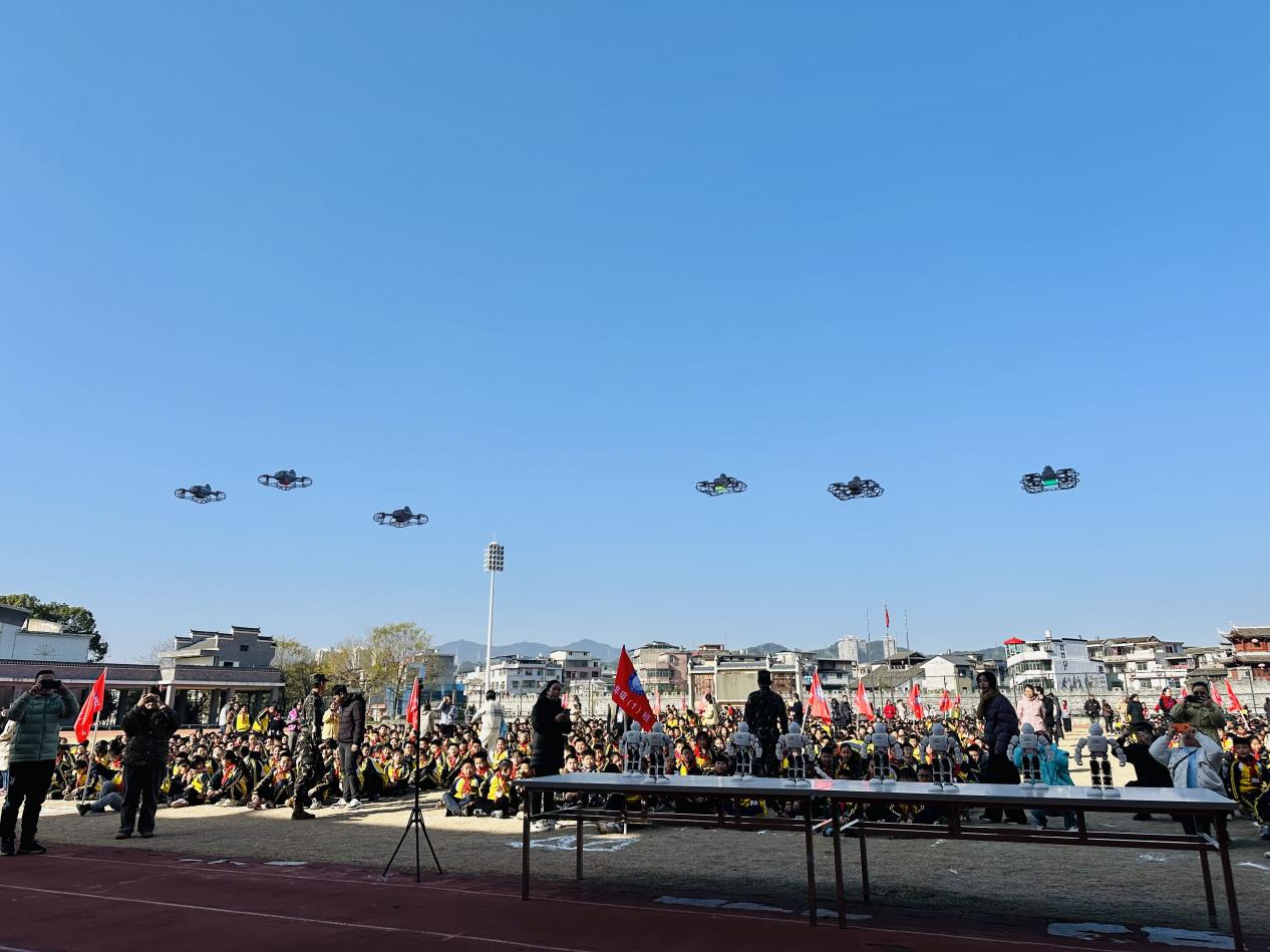 活动现场,科技之光与民族情韵交相辉映。无人机编队似翱翔雄鹰,机器人表演活力四射,在实验小学、汀师附小、南山教育集团(中学)依次惊艳亮相,开启科学奇幻大门。