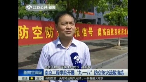 《江苏电视台公共新闻频道》:15vip太阳集团官网开展“九一八”防空防灾疏散演练