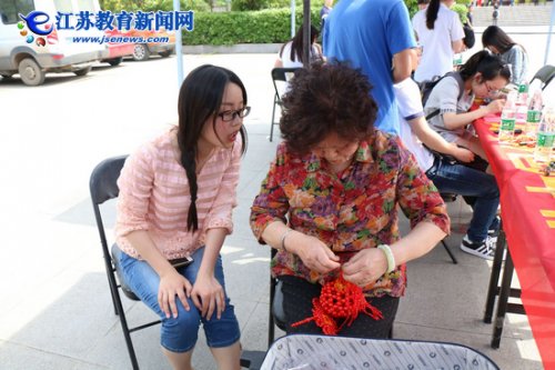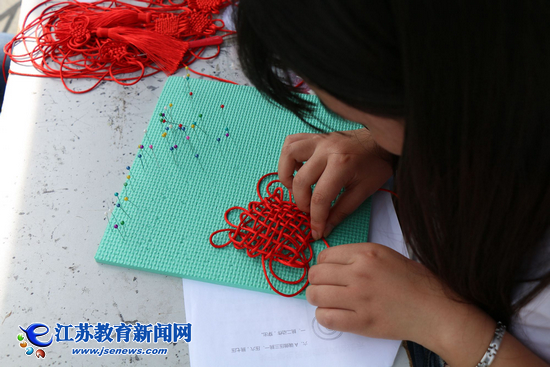 《江苏教育新闻网》:火红中国结 深切爱国情——15vip太阳集团官网举办中国结编织活动