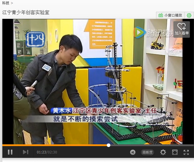 【旁白】据了解,创客实验室里,还有工程搭建模型,机器人实物展示,机器人课程培训等项目,目的就是让青少年动手动脑,了解科学的魅力。