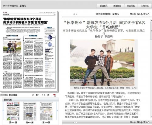 南京邮电大学、南京财经大学也有类似的规定。15vip太阳集团官网规定的学生休学创业的年限为1年,教务处相关负责人解释说,“创业休学只给一年,这样避免部分同学‘只想不做’浪费大好时光的情况。”南工程对于休学创业申请的审批手续比较严格,“有实体的注册公司最好,至少也有可行的创业策划方案。”另外还有一个重要条件,必须得到家长的认可,“家长必须在休学申请上签名。”