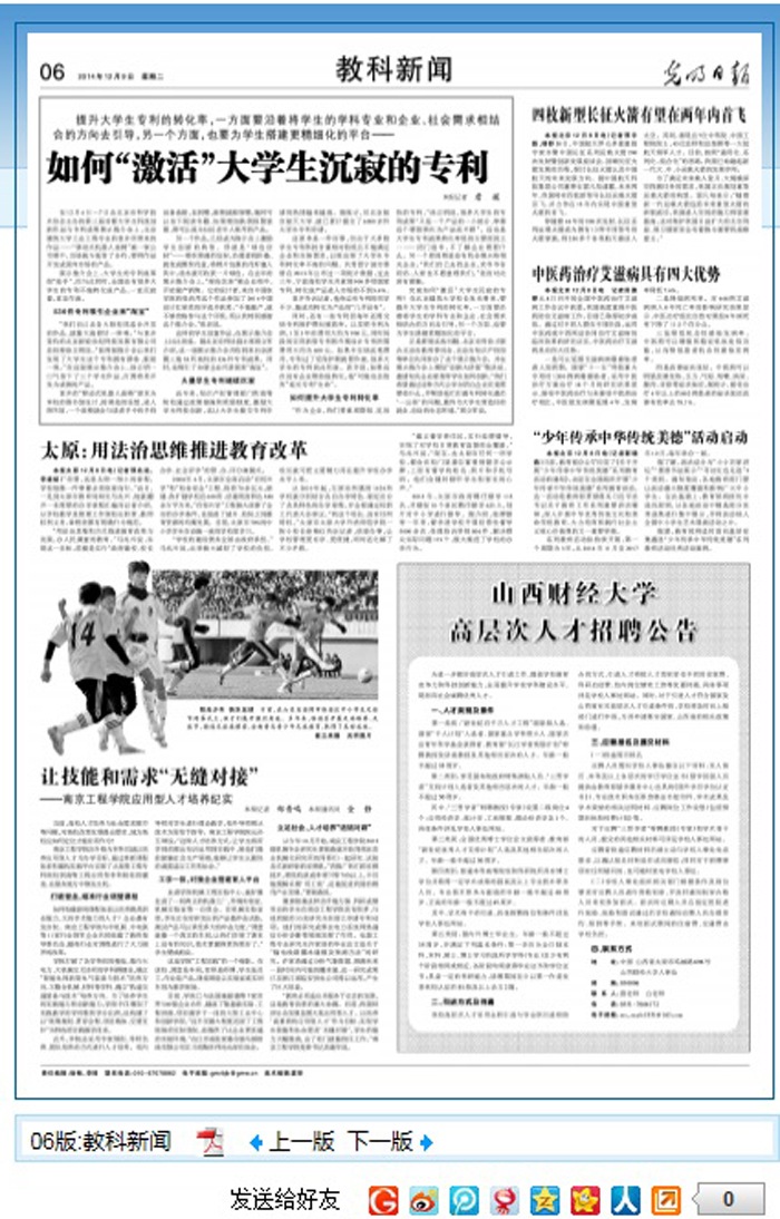 12月9日,《光明日报》第6版以《让技能和需求“无缝对接”》为题报道太阳集团应用型人才培养的特色,用实例生动展现了太阳集团在课程体系改革、校企深度融合以及不断提升人才培养质量方面的做法和成果。现将全文转载如下: